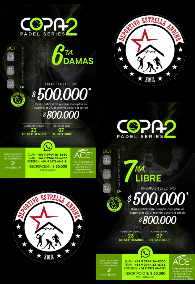 »» Evento: 6TA DAMAS y 7MA LIBRE COPA 2 (Estrella Andina) »» Localidad: San Martín de los Andes »» Fechas: 11/10/2025 al 12/10/2025